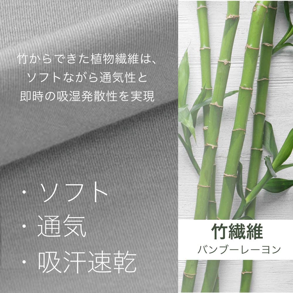 竹から出来た植物繊維を使用した本製品は、ソフトながら通気速乾性と即時の吸湿発散性を備えています。