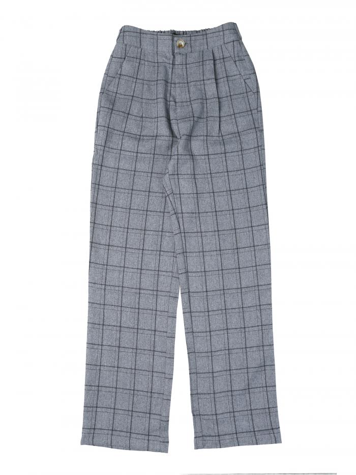ソウテン Allegra K チェック柄 ストレートパンツ ズボン ワイドパンツ 格子縞 通勤 カジュアル レディース ダークグレー XS