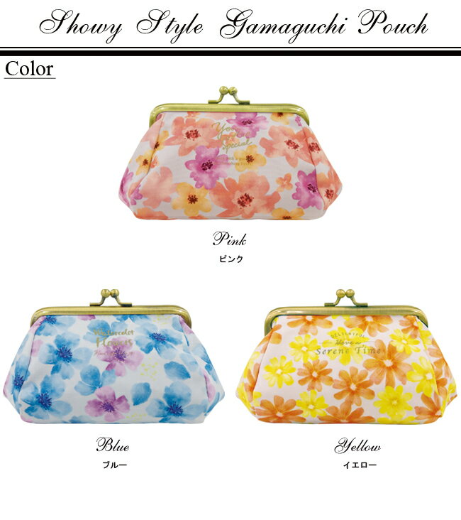 【9/11 1:59まで!!スーパーSALE70%OFF!】ピンクトリックshowy style がま口ポーチ化粧ポーチ メイクポーチ 花柄 フラワー flower レディース かわいい 可愛い おしゃれ がま口 ギフト プレゼント 大人 学生 大きめ たばこ ピンク ブルー イエロー