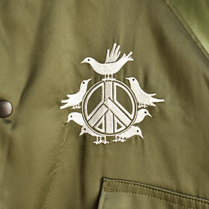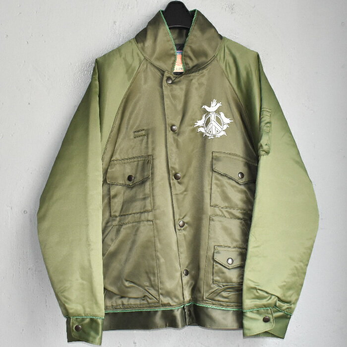 blackmeans "Panta rhei" Souvenir Jacket BERBERJIN ベルベルジン ブラックミーンズ 日本製 スカジャン スーベニアジャケット 刺繍 龍 カーキ オリーブ ブルゾン 身頃と袖部分から分けられた2トーンカラーの配色。