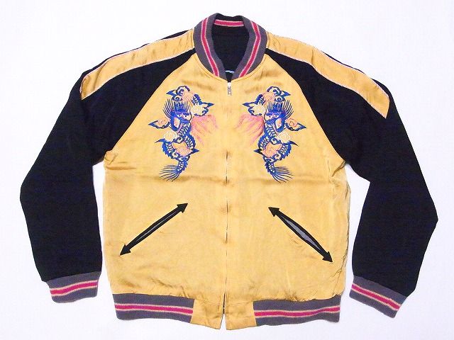 リバーシブルで中綿の入っていないタイプのスカジャンで、表面、リバース面ともに柄は刺繍で施されています。